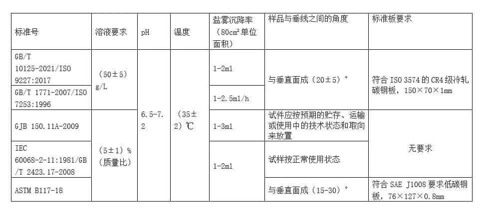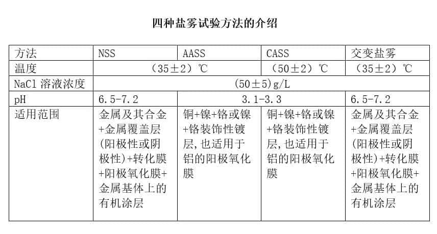 以下是涂料常见盐雾试验方法对比,供参考: