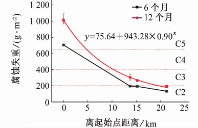 上述大气污染物的存在加剧了重污染地区腐蚀环境的恶劣程度,对该地区的钢结构、金属设施等构件造成了严重的安全威胁,较大地加速了其腐蚀进程。有研究人员基于广东、广西、贵州等地区输电线路的建设情况,选取了城市、工业污染、海洋及乡村4种大气环境,开展了为期一年的实地输电线路大气腐蚀行为研究,结果显示,工业污染地区腐蚀影响最重,海洋次之,乡村最轻,说明污染大气环境的腐蚀程度较单一海洋大气环境的更加恶劣。